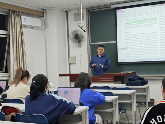 (龚龑教授在讲授英语微专业《欧美文化》课程)