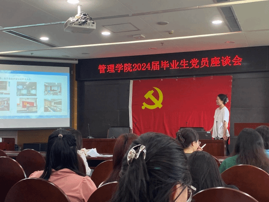 为进一步增强管理学院学生党支部的凝聚力、感召力和战斗力,发挥毕业生党员的先锋模范作用,管理学院学生党支部于5月9日上午在教图楼六层报告厅开展2024届毕业生党员座谈会。管理学院党总支书记赵文淼、副书记赵凤利和2024届全体毕业生党员参加,学生党支部书记孙可主持。