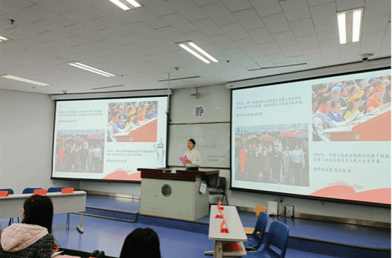 为深入学习贯彻全国"两会"精神,不断深化对习近平新时代中国特色社会主义思想的理解,3月26日下午,管理学院学生党支部在教图楼213举行了以“学深悟透‘两会’精神,思辨领航青年发展”为主题的微党课学习活动。管理学院党总支副书记赵凤利到会指导,管理学院学生党支部书记孙可做赛前动员,全体学生党员及积极分子参与学习。