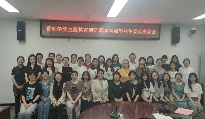 为贯彻落实学校党委关于主题教育的部署要求,按照《管理学院党总支深入开展学习贯彻习近平新时代中国特色社会主义思想主题教育工作方案》安排,发挥毕业生党员的先锋模范作用,5月12日,管理学院在第七会议室召开主题教育调研暨2023届毕业生党员座谈会。管理学院党总支书记赵文淼老师、管理学院党总支副书记赵凤利老师、管理学院学生党支部及金融系学生党支部2023届毕业生党员、管理学院2020级学生党员代表参加座谈,管理学院学生党支部书记张弦主持会议。