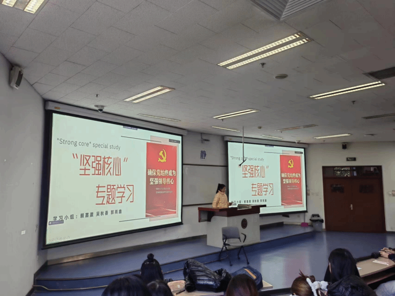 接着,管理学院团支书代表就四个主题学习心得进行交流。预备党员李琪、于潇北分享“强国复兴”主题教育,强调全面建成社会主义现代化强国的“两步走”方针和2035年发展总体目标,强调深刻理解中国式现代化是强国建设、民族复兴的唯一道路;入党积极分子2021级人力2班团支书汤焕进行“思想旗帜”主题教育分享,号召同学们主动学习党的创新理论,学习习近平新时代中国特色社会主义思想,做新时代好青年;2022级金融班团支书陈以宁围绕“挺膺担当”主题进行了教育分享,指出大学生对于实现中华民族伟大复兴的思想旗帜有着重要责任,应坚定理想信念、深入学习、积极参与、创新思维、传承文化,书写“强国有我”的青春画卷;2022级会计3班团支书赖嘉晨分享了“坚强核心”主题学习,回顾历史,重温中国共产党的相关知识,并列举出集体学习、个人自学和交流分享的专题学习方法。