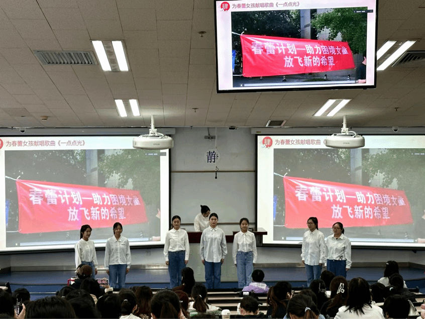 第一党小组围绕妇女十三大报告中“矢志不渝跟党奋斗的中国妇女和妇联组织”相关内容进行宣讲,主题是“春蕾绽放,拥抱未来”。结合中国妇女十三大报告,对助力困境失学女童重返校园的“春蕾计划”展开介绍,展示我们学校“春蕾计划”的帮扶成果,并献唱公益歌曲《一点点光》以及诗朗诵,号召更多人一同助力需要帮助的春蕾女孩们。妇联组织自觉践行习近平总书记谆谆教诲,围绕“国之大者”,面向妇女儿童和家庭,强化引领服务联系,勇于改革创新,把广大妇女紧紧团结在党的周围,妇联工作开创了新局面。