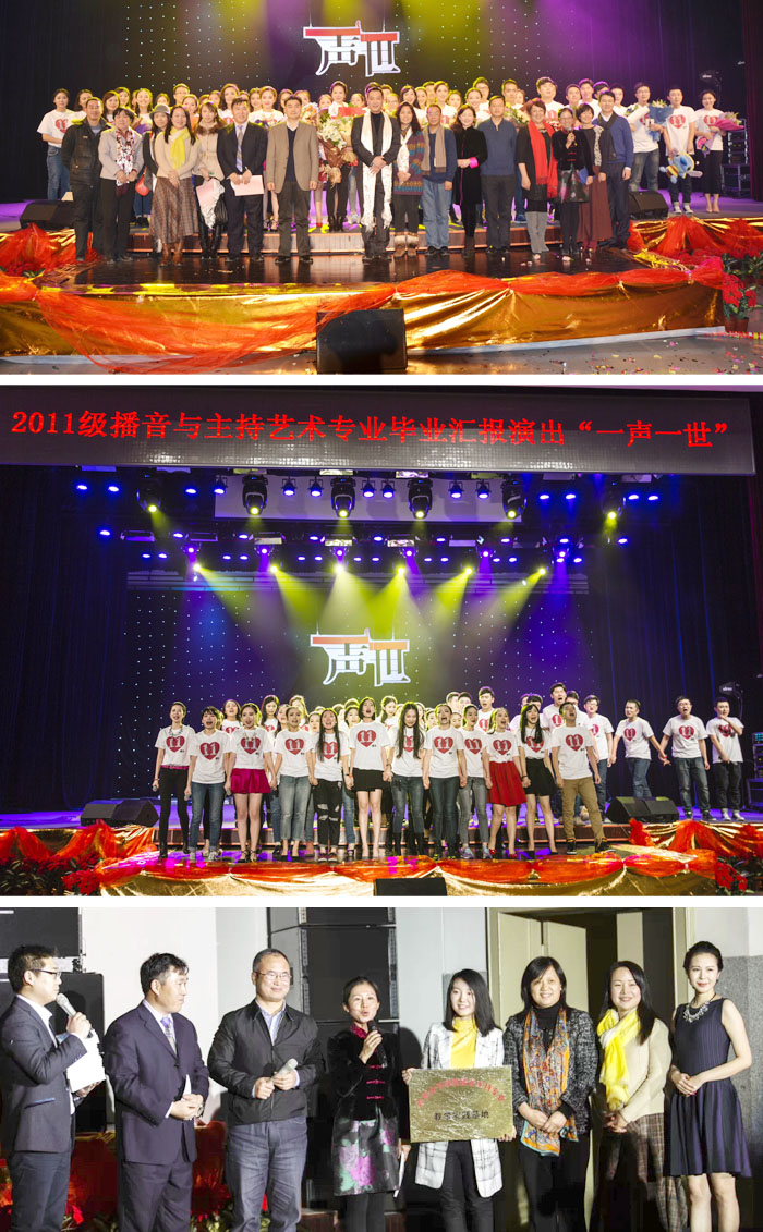 2014年12月31日下午3:30,伴随着悠远的钟声,bwin必赢中国官网2011级播音与主持专业“一声一世”毕业汇报演出在学院礼堂隆重上演,座无虚席。到场的嘉宾有李明舜书记、宋胜菊副院长、学院各部门负责人以及专家、媒体代表、其他高校代表和往届毕业生代表。