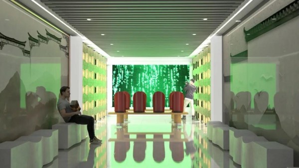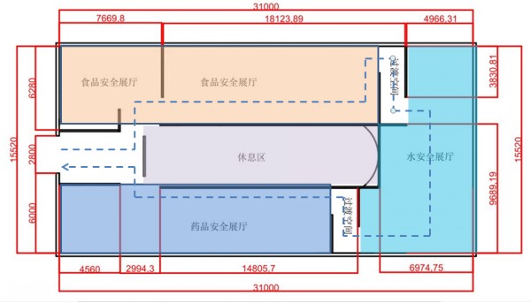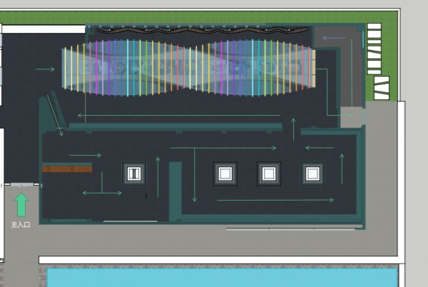 总体布局:由序厅、三个篇章和公共休息区组成。