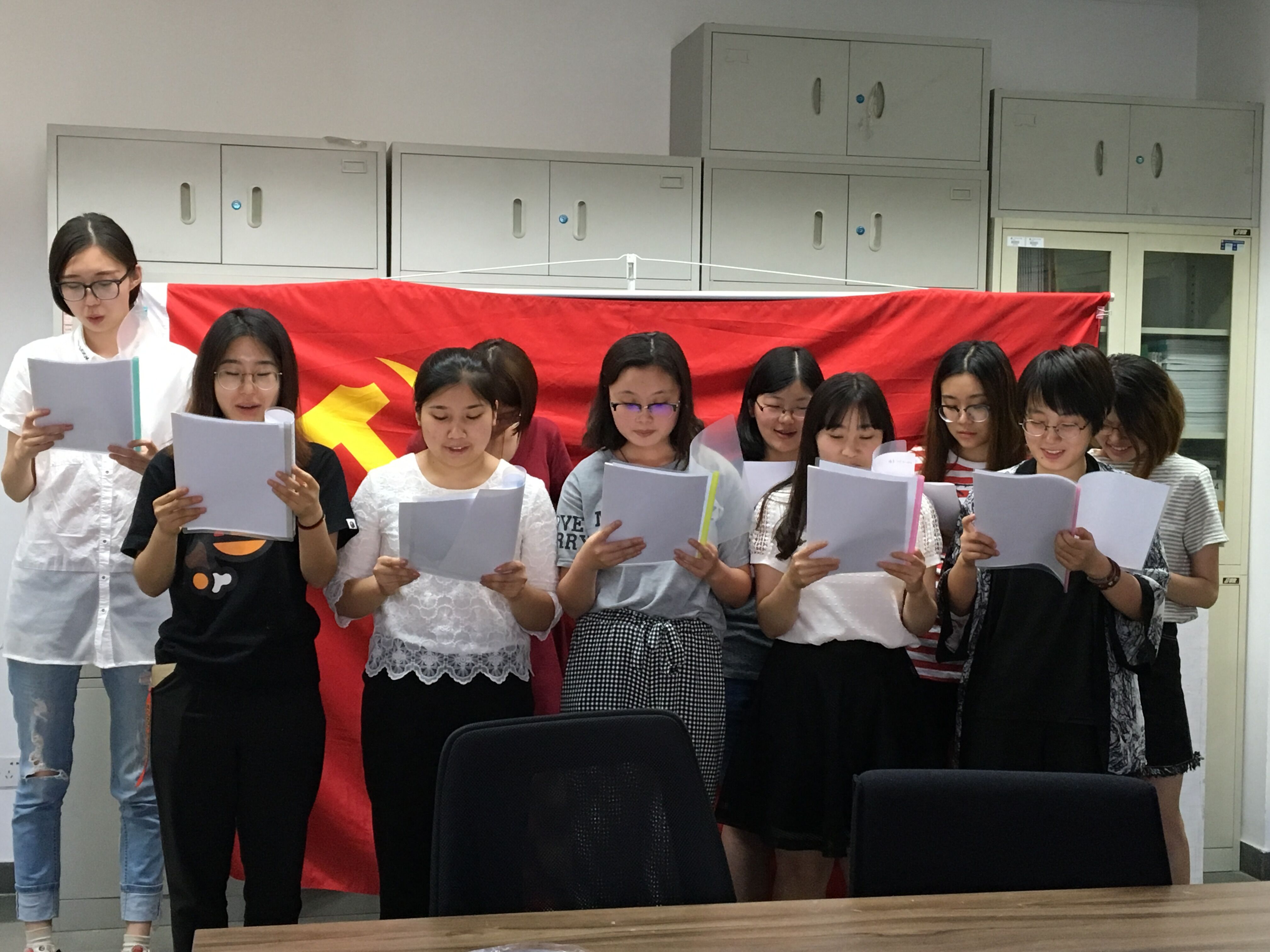 为迎接党的十九大胜利召开,庆祝中国共产党成立96周年,扎实推进“两学一做”学习教育常态化制度化,艺术学院党总支于2017年6月16日中午组织党员、学生党员及积极分子举行了“不忘初心,继续前进”红色经典诵读党日活动。