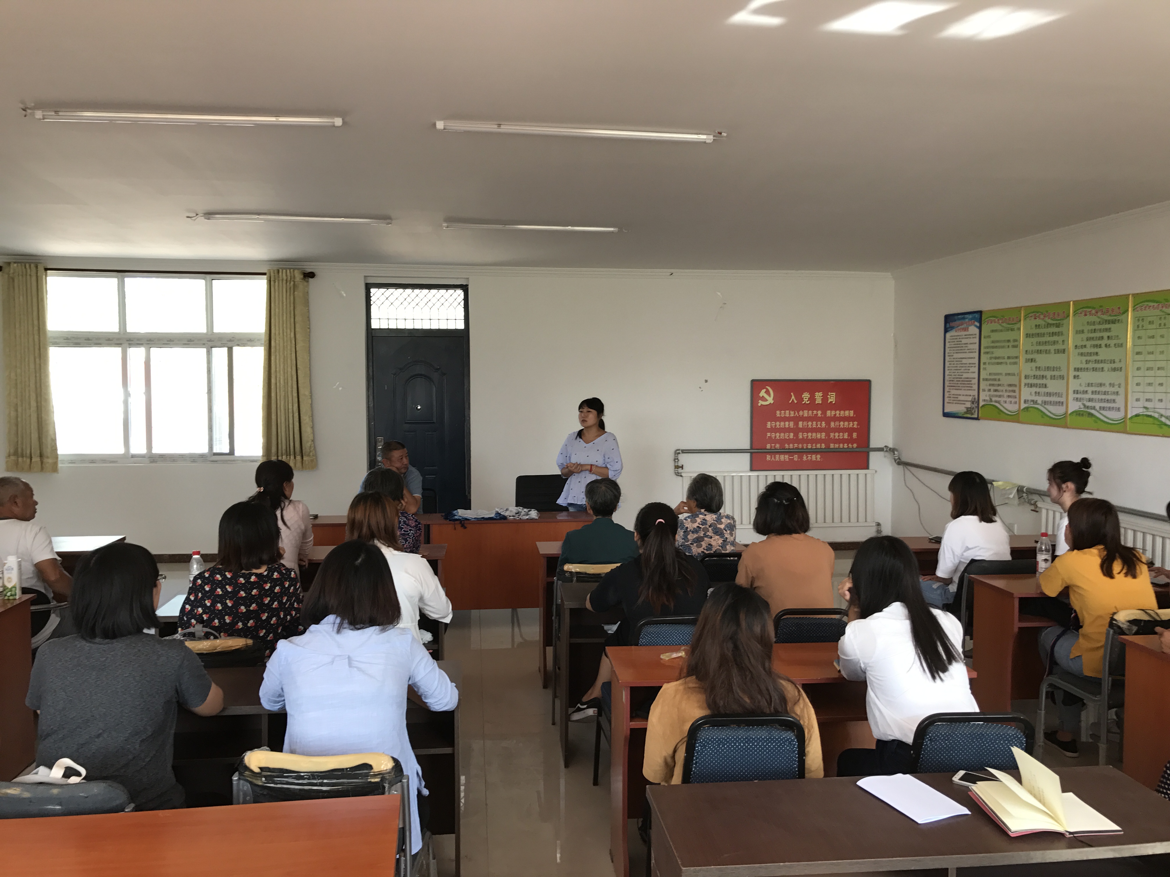 9月20日,经过近两个小时的车程颠簸学生党支部成员抵达了红石坎村。红十坎村党支部书记马永强和村中的老党员们热情的接待了我们。红石坎村域面积4.76 平方公里,聚落在大虎顶山脚下,平蓟路两侧,呈东西向矩形,300余户人家,人口1000多人,村中现有党员51名,现在常驻村里的党员基本都是60岁以上的老人。该村经济以发展果品为主,主要种植核桃和柿子、大枣等,新发展樱桃采摘园300亩。