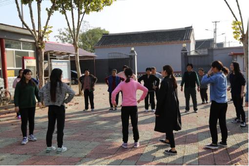 而后,文化交流活动在一片喜庆的气氛中展开,播音与主持班的学生主持了文化活动;文化产业管理班学生为老乡们表演了优美的舞蹈。而后,文化产业管理班的学生又热情地教当地的老乡们跳起了为此次活动专门设计的广场舞,与村民融入在一起,老乡和同学们快乐的笑声洋溢在一片热烈的气氛中。