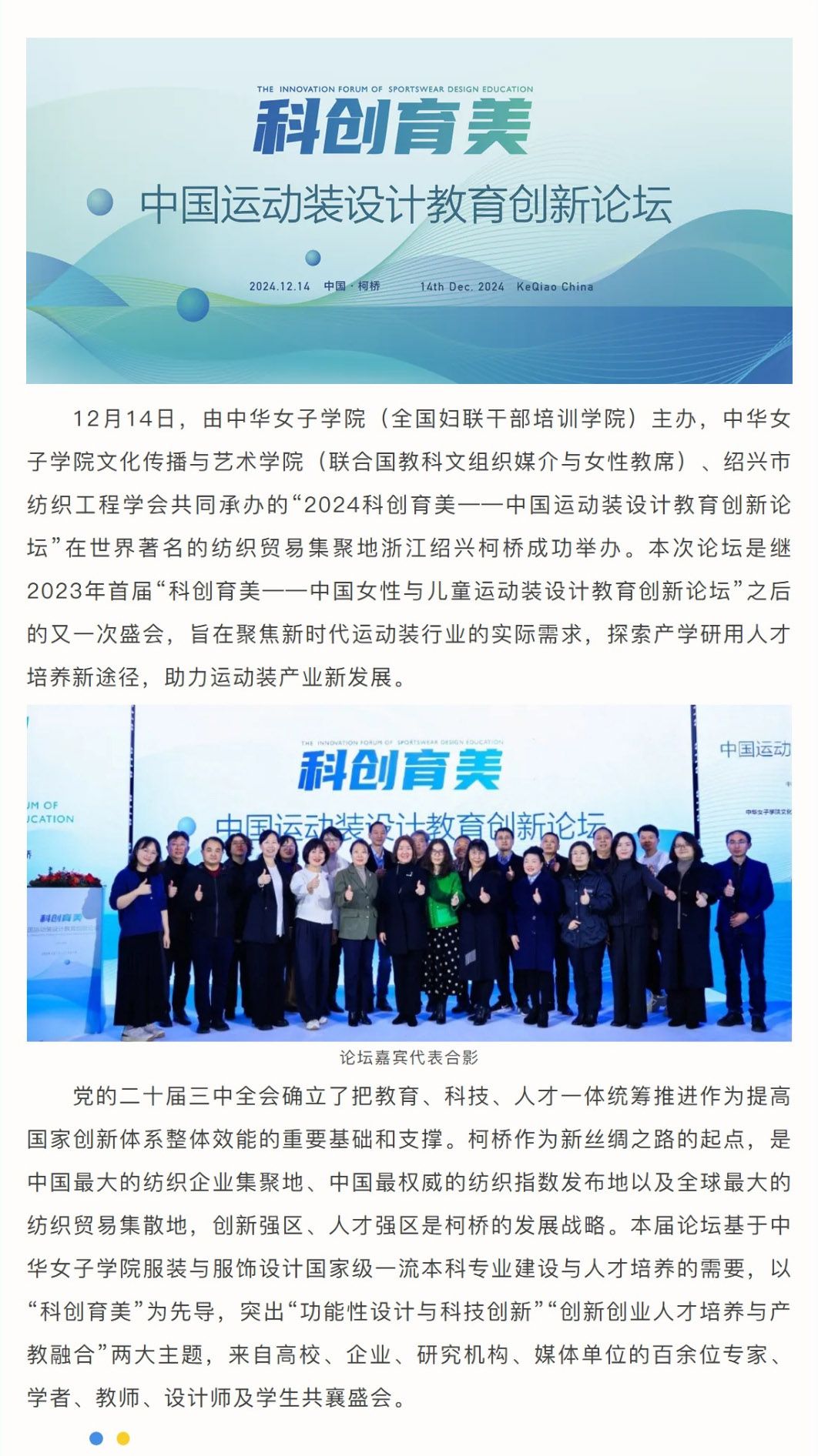2024科创育美——中国运动装设计教育创新论坛在绍兴柯桥圆满举办