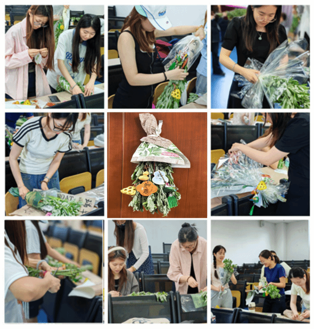 在艾草花束DIY系列活动中,学院为同学们准备了丰富的材料,大家发挥创意,亲手制作艾草花束。艾草清香扑鼻,寓意驱邪避疫,同学们将美好的祝福融入花束之中,祈福纳祥,迎接端午佳节。活动现场弥漫着艾草的清香,同学们的脸上洋溢着喜悦的笑容。