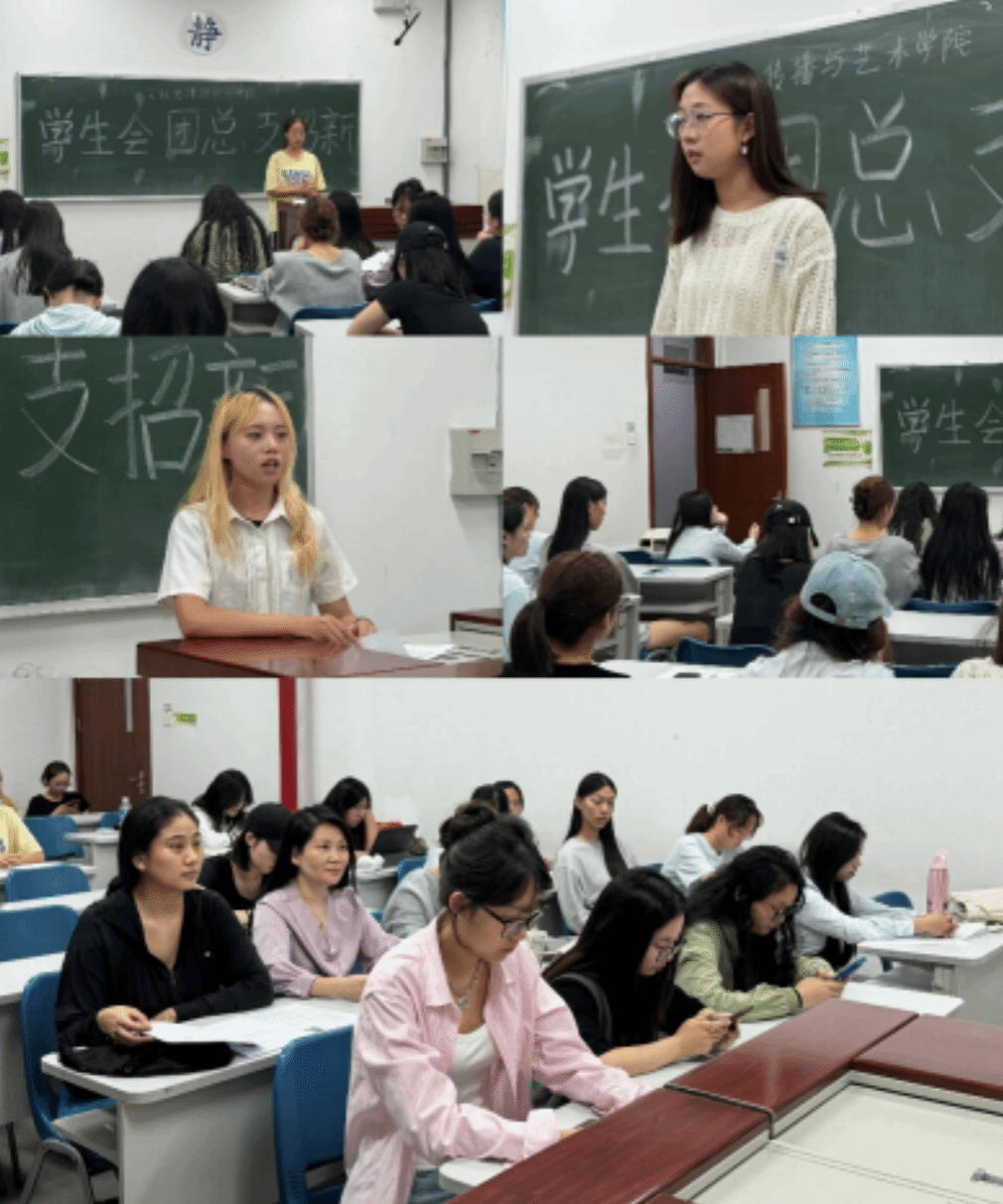 为促进我院学生工作的蓬勃发展,加强团学队伍建设,增强学生组织的活力与凝聚力,服务同学,文化传播与艺术学院于9月13日,在主楼301教室成功举办了团学招新大会。由团总支副书记、学生会主席及各部部长担任面试官,团总支副书记张心悦主持会议。团总支书记胡娟老师参加了会议。