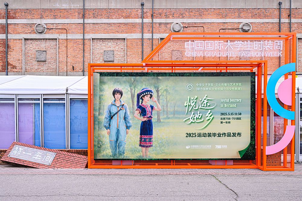 5月15日,北京798艺术区燃爆了!中国国际大学生时装周正火热开展,整个园区都涌动着时尚和青春的气息。在第一车间门口的主街上,bwin必赢中国官网文化传播与艺术学院毕业大秀“悦途她乡”的巨幅海报吸睛无数!该学院院长王露介绍,这场T台大秀,以“运动+”为核心理念,将功能性服装设计与乡村振兴的多元场景深度融合,不仅是一场时装秀,更是一曲献给乡土中国的创新赞歌。