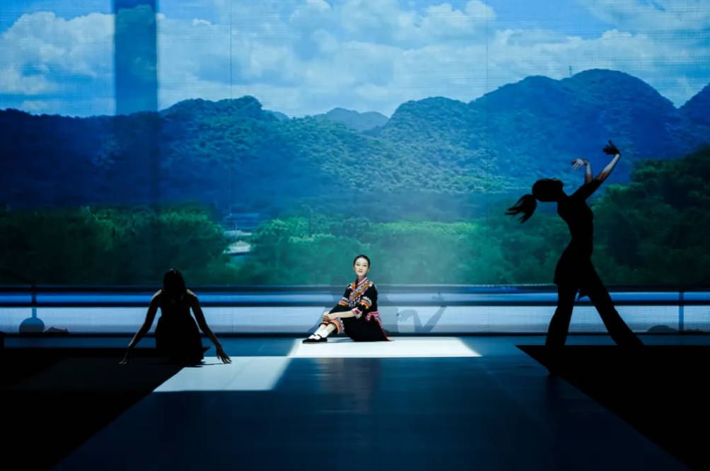 全场最让人惊艳的环节,是全国三八红旗手标兵李娜倮的“神助攻”!她的歌声直接把人拽进了云南的青山绿水间——她乡!当身着拉祜族服饰的模特们踏着歌声的节奏跳起民族舞,氛围感立刻拉满,实现了非遗文化从田间地头到T台的跨越!