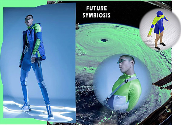 孙墨然同学的毕业作品为迎接2022北京冬奥会的举办而畅想,以“回到地球”为创意,立足于越野滑雪服装功能性需求,运用可持续时尚设计理念在功能性运动装设计上独具特色。她的作品能够跳脱出二维视角下的图形与配色设计,而针对三维的人体在运动状态下的特点进行创新设计,在展现人体的运动之美的同时,又满足了人体运动的需求。可贵的是作品在设计中能够将可持续理念融入视觉的表达、材料的环保、裁剪与制作技术等一系列环节中,让设计具有可持续时尚之美。在工艺技术层面,作品能够在展现创新思考的同时,积极探索纺织材料、制作工艺等技术手段是如何助力服装设计的。作品在符合滑雪运动的特殊需求下,又兼顾流行趋势等消费审美的需求,探索如何平衡越野滑雪服装的审美和功能性,通过款式、结构、色彩、合理的材料的运用实现了功能性运动装设计的个性化表达。借助2022 年冬奥会在北京举办的契机,以及“3 亿人参与冰雪运动”等国家政策的大力推动,我国滑雪运动及相关产业开始进入了高速增长期,冬季运动服装市场需求巨大,更为运动装设计创新人才带来机遇。