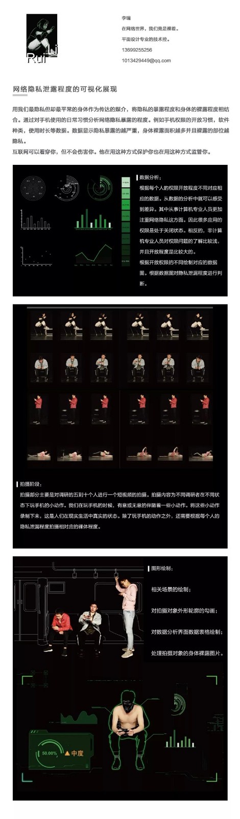 视觉传达设计专业毕业设计主题为“无隅”, 此主题更强调在新环境下设计与内容、与人、与社会的关系,根据主题提出条件与限制,学生的选题更具针对性,从而激发出更多的创作思路。设计作品体现了视觉传达的专业特点,体现了作品的原创性、时代性、合理性和研究性,并采用动、静结合的多媒介方式展现。同学们能够完整、清晰地把握设计主题,并将其中概念性的思考展开,以具体的可视化的设计展示出来。