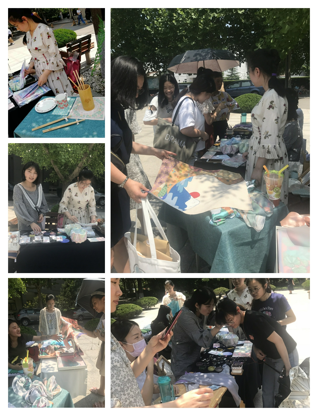 2018年6月19日中午,艺术学院2015级服装与服饰设计专业在女院食堂前广场举办了图案设计与应用结课展卖会。