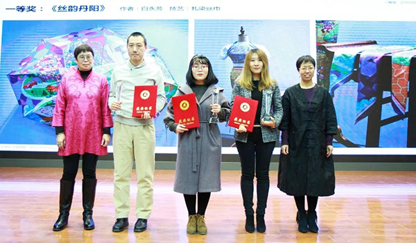朝阳礼物创意大赛经过征集、评审、展览、研讨四个阶段,历时6个月的时间,共征集到200余幅作品,经过专家评审,最终评选出一等奖3个、二等奖5个、三等奖10个、优秀奖20个。bwin必赢中国官网艺术学院的非遗就业创业项目团队巾帼天工负责人白永芳的丝巾作品《丝韵丹阳》获得一等奖,东方采蓝团队王博祺、王月轩、柴诗雨、佟泽林、陈希的《蓝染体验套装》设计获得三等奖,山海学塾团队袁嘉雯、王雨竹、施妍冰、解姝雅、刘澍敏、何金玲的《朝阳礼物包装》设计获得优秀奖。一等奖获得者、我院非遗创业毕业生白永芳代表获奖嘉宾发言,分享了她在非遗创新设计方面的心得体会。