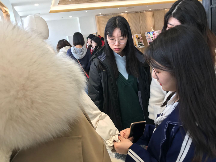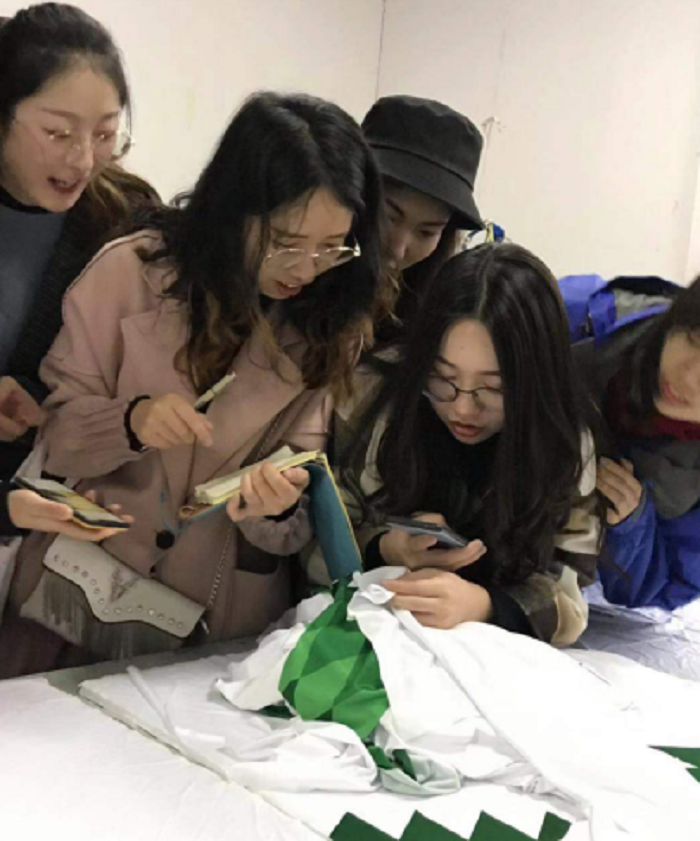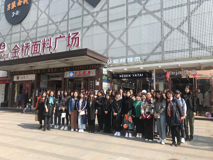 本次教学实践,师生们还专程参观了坐落于柯桥的中国轻纺城。中国轻纺城是目前亚洲规模最大、成交额最高、经营品种最多的纺织品市场,老师与学生带着明确的目标,探访轻纺城针织市场,寻找适合运动服装的具有吸湿排汗、速干、保暖、高回弹的材料,也收集到很多具有独特视觉效果的功能性面料。市场内种类繁多的面料样品让学生可以对功能性面料的多样性和特殊性进行对比研究,还可以为之后功能性服装的制作和毕业设计的完成找到合适的物料资源。难能可贵的是,师生们还受到了绍兴纤谷纺织品有限公司的热情招待,这个在面料设计与推广方面独具特色的面料企业让师生们收获很多。在其宽敞的产品展厅内同学们看到的不仅仅是面料的样品,而是一件件设计感十足的成衣。纤谷的周总在展厅里为学生开设临时课堂,讲述我国纺织服装产业的现状与发展趋势,介绍浙江织造行业的历史以及绍兴地区近年来纺织服装产业的发展。鼓励学生开拓视野,多听多看,为今后的就业打下良好的基础。