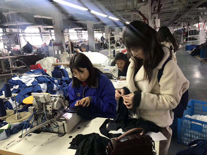 围绕着功能性运动装课程的学习,学生将课堂上专业知识与理论的学习内容带到了绍兴一线生产企业的车间里。