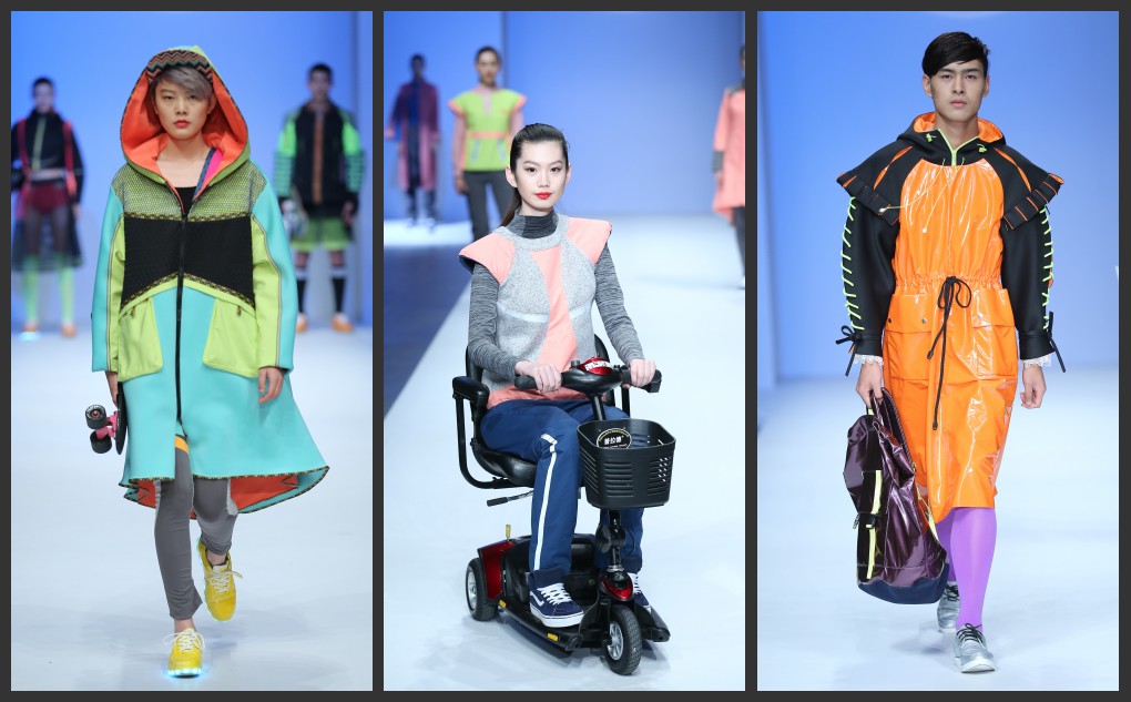 此次优秀设计作品发布会共有76件服装,24位毕业生的作品在时装周上呈现。此次毕业生设计创作过程中关注应用与创意融合、体现学科交叉,探究与创新的特点。尤为关注对用户需求的分析,从应用的角度对造型、材料与工艺进行探索。本次设计方案中鲜明的突出了设计对人的关怀与美的情感体验,例如夜色的能发光的时尚滑板装、兼具美丽与便利的为轮椅病患设计的休闲服、从银发老者到活力青年的家庭滑雪服系列和应对不同气候条件的情侣自驾多功能旅行装。在教学实践中启发学生们让创意展翅飞翔,让艺术与科技成为创意的华美双翼,来满足不同的年龄不同人群对美的渴望,为时尚的定义添加新的注解。