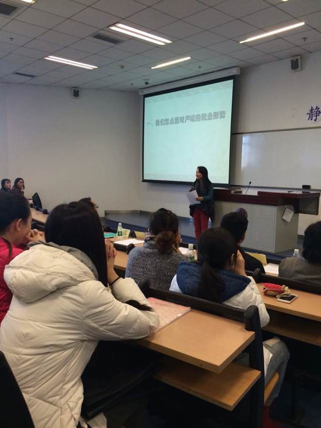 学校相关部门的老师在就业意向、就业政策、留学政策、西部志愿计划等方面分别做了详细的介绍和讲解。就业辅导员在分析往届毕业生就业情况的基础上,给毕业生提出了相关的就业建议。院长王露现场进行了就业动员并对毕业生提出了殷切希望。管理学院的闫芃序老师用自己的亲身经历介绍了西部志愿者的日常生活,鼓励毕业生们服务基层。各位教研室负责老师也分别给毕业生们加油鼓劲。老师们具体的指导、详尽的讲解和缜密的分析让毕业生对自己的就业前景和就业方向有了较为深刻的认识。