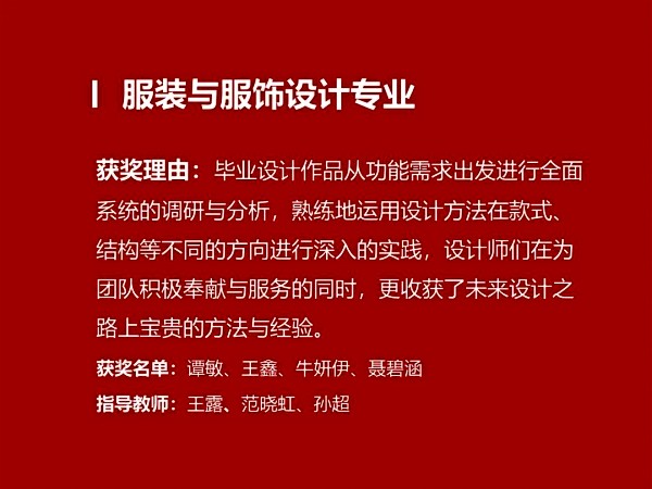 院长王露教授代表艺术学院致辞,向所有获奖的同学表示衷心的祝贺,并向2017届毕业生表达了不舍之情,希望同学们肩负民族复兴的使命在今后的艺术道路上,乘风破浪,突破自我,在各自的专业领域里取得更大的成绩。来自服装与服饰设计专业的张子滢同学代表毕业生发言,表达了对所有老师四年来对同学们关心和教育的感恩之情。艺术学院书记刘洪玉老师宣读了2017届毕业生优秀获奖作品名单,对获奖同学表示祝贺。同时对全体毕业生提出期许和祝福,希望她们她们在前行的道路上一切顺利,前程似锦。
