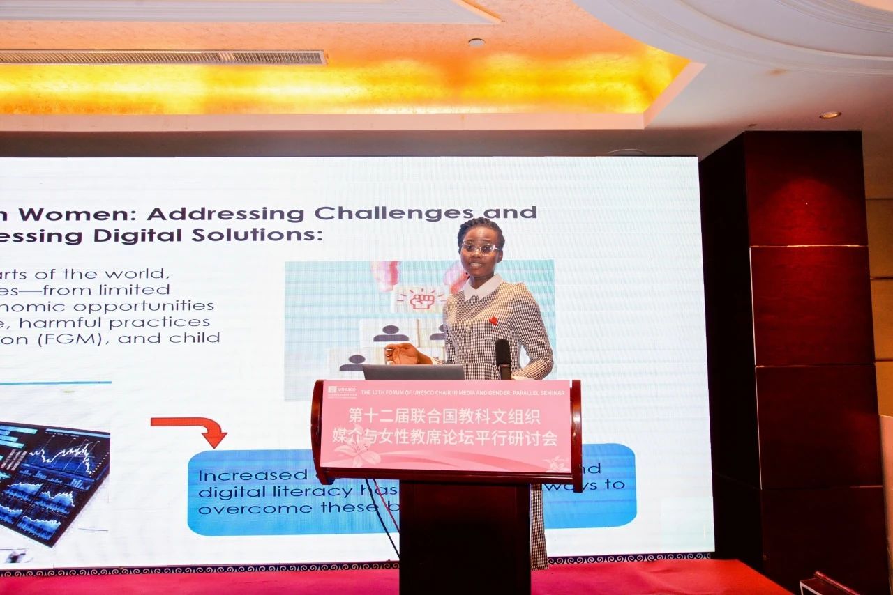 目标导向的赋能女孩基金会主席,尼日利亚贝宁大学助教奥加拉女士在演讲中强调,数字素养对女性而言不仅是技能,更是一条生命线,尤其在发展中国家,它为女性打开了教育、健康、经济独立和维权的新机遇。她指出,尽管尼日利亚女性面临教育和经济机会有限等挑战,但通过在线学习平台和数字工具的普及,越来越多的女性正实现经济独立,并积极参与政策倡导和决策。她呼吁各界共同努力,消除数字鸿沟,让每位女性都能在数字时代蓬勃发展。