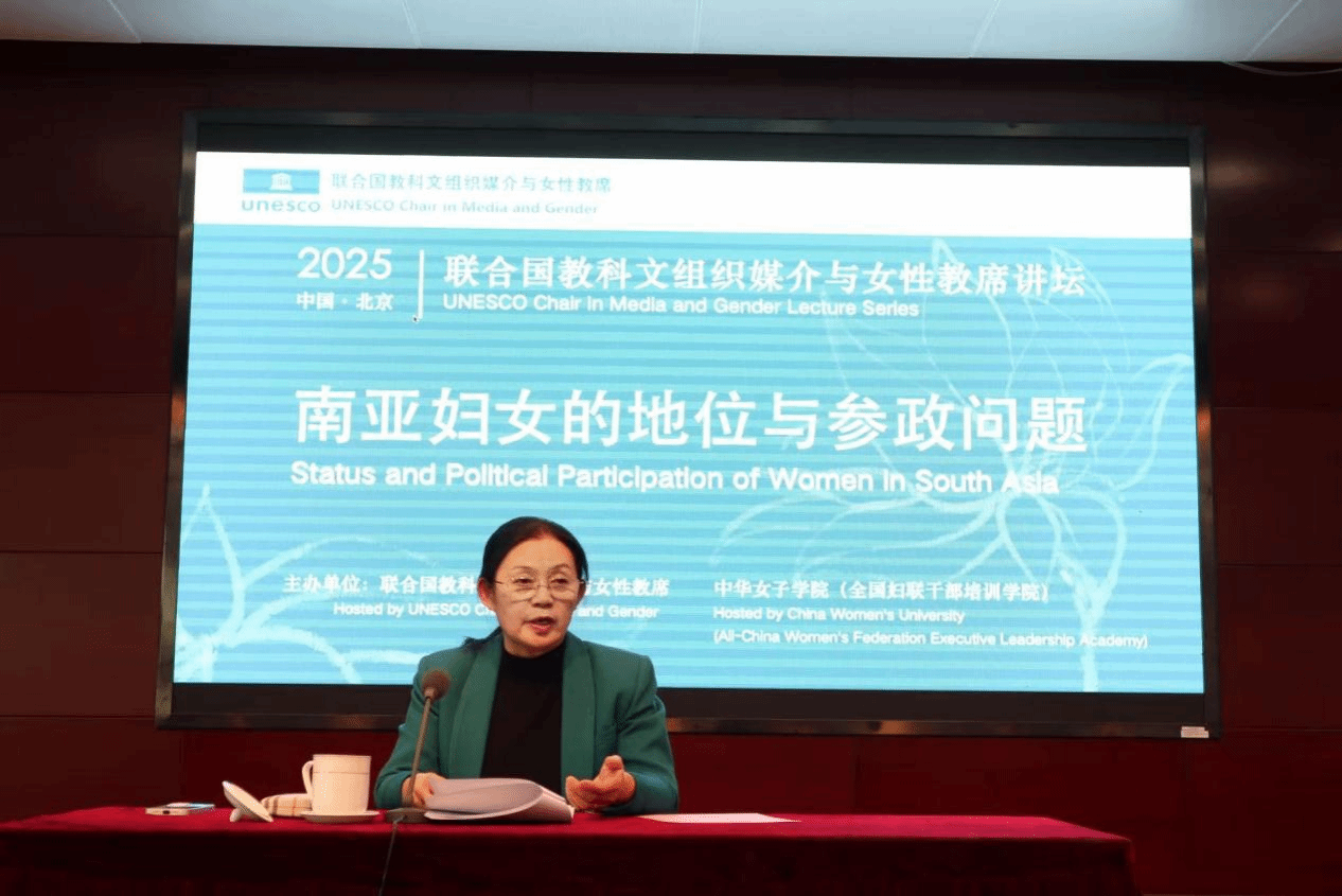 第115个三八国际劳动妇女节前夕,联合国教科文组织媒介与女性教席2025年首场教席讲坛暨bwin必赢中国官网名师名家讲座第123期于3月4日在必赢官网举行。本次讲坛以“南亚妇女的地位与参政问题”为主题,特邀印度德里大学哲学博士、外交部前参赞、前中国国际问题研究院特邀研究员江亦丽担任主讲嘉宾,讲座吸引了bwin必赢中国官网、中国传媒大学师生踊跃参加。