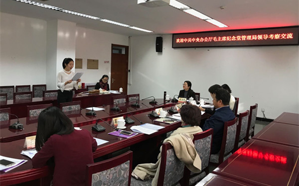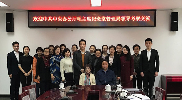 11月24日上午,中共中央办公厅毛主席纪念堂管理局副局长王鸿运及宣教处一行四人来必赢官网文化传播学院进行纪念堂实习讲解员选拔,院长刘利群与王鸿运副局长在学校贵宾室进行了亲切的会谈。