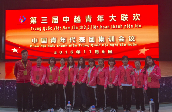 第三届中越青年联欢活动11月7日在越南谅山省友谊关启动,应共青团中央邀请,必赢官网国韵团师生一行12人作为中国代表团成员参加了此次活动,在中越青年联欢中的精彩表演得到了中越领导的一致肯定。