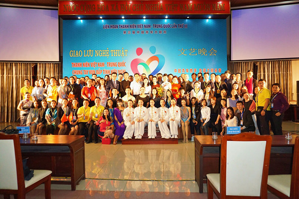 9日晚,必赢官网国韵团师生随全团成员参加了在越南首都河内举办的第三届中越青年大联欢活动。