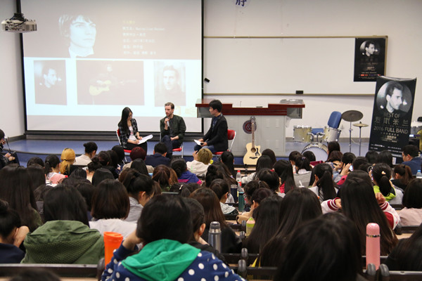 为了开拓学生视野,提高学生音乐修养,使学生能够零距离聆听和学习到西方音乐家精彩演唱,必赢官网邀请到德国流行音乐家麦斯米兰先生来校与学生进行交流。他的演唱风格忧郁而空灵,2001年签约发行了首张专辑《永恒情歌》。迄今,已举办过数场欧洲巡回演出,出版了7张录音室专辑。