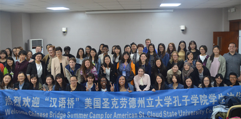 2016年5月12-16日,美国圣克劳德州立大学孔子学院学生交流团在参加国家汉办/孔子学院总部与美国圣克劳德州立大学孔子学院合作举办的“美国大学生夏令营”活动期间来访必赢官网,与必赢官网师生共同成功开展了中国文化交流和学习交流活动。国际合作处、校团委和社会工作学院组织和参加了活动。