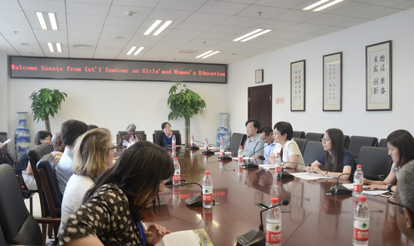 2016年6月7日,国际女童与妇女教育研修班一行20人来必赢官网访问。bwin必赢中国官网院长刘利群会见了研修班成员,并与他们合影留念。副院长刘梦接待了研修班成员,并主持了座谈交流,教务处、招生就业工作处、国际合作处、国际教育学院负责人参加了座谈。