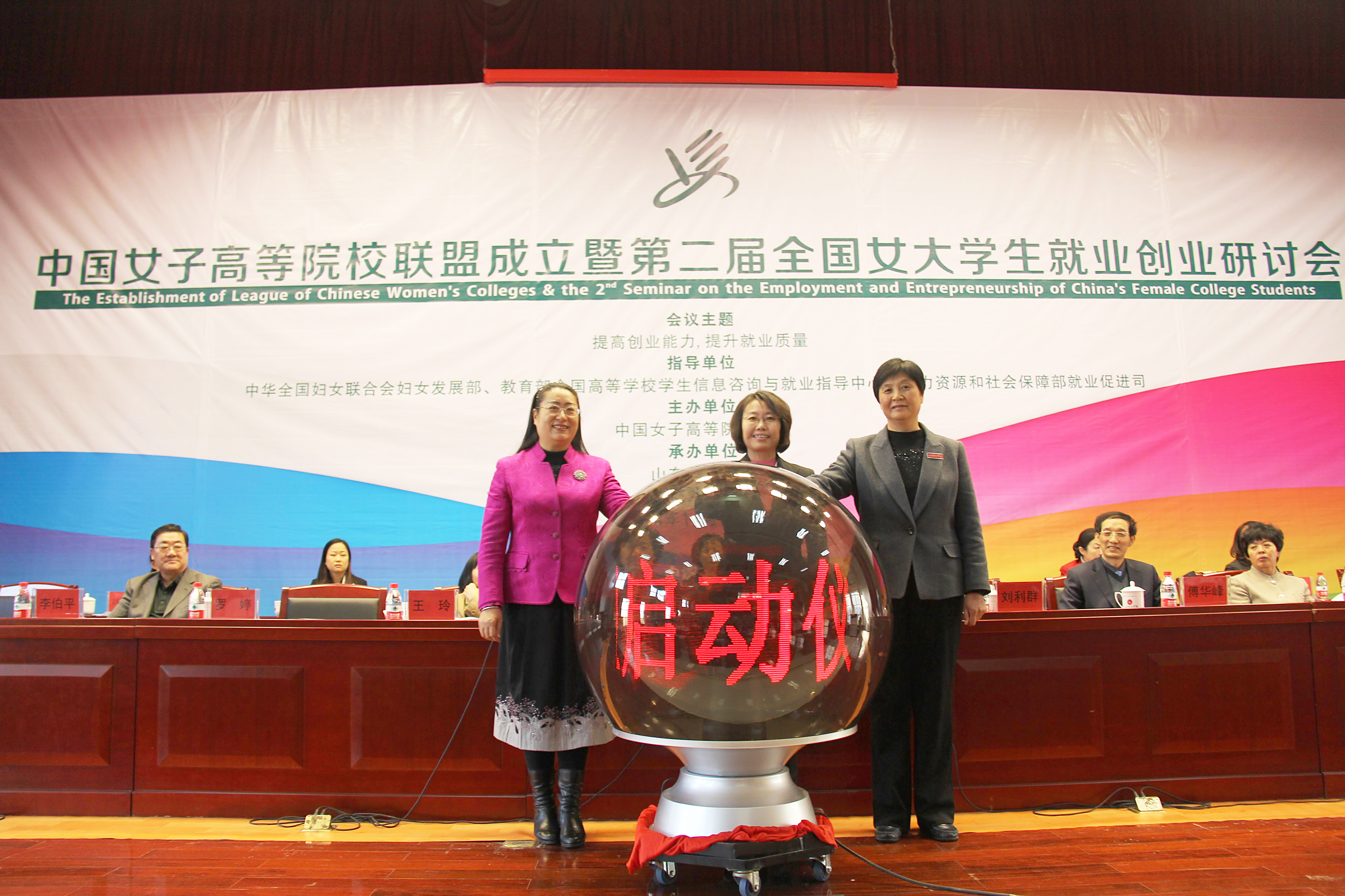 11月13日下午,中国女子高等院校联盟成立大会暨第二届全国女大学生就业创业研讨会在山东女子学院隆重举行。会上,刘利群与同时当选为联盟理事长的山东女子学院院长范素华、湖南女子学院党委书记罗婷,共同按下了象征中国女子高等院校联盟正式成立的启动球,全体参会人员一起见证了联盟的成立。