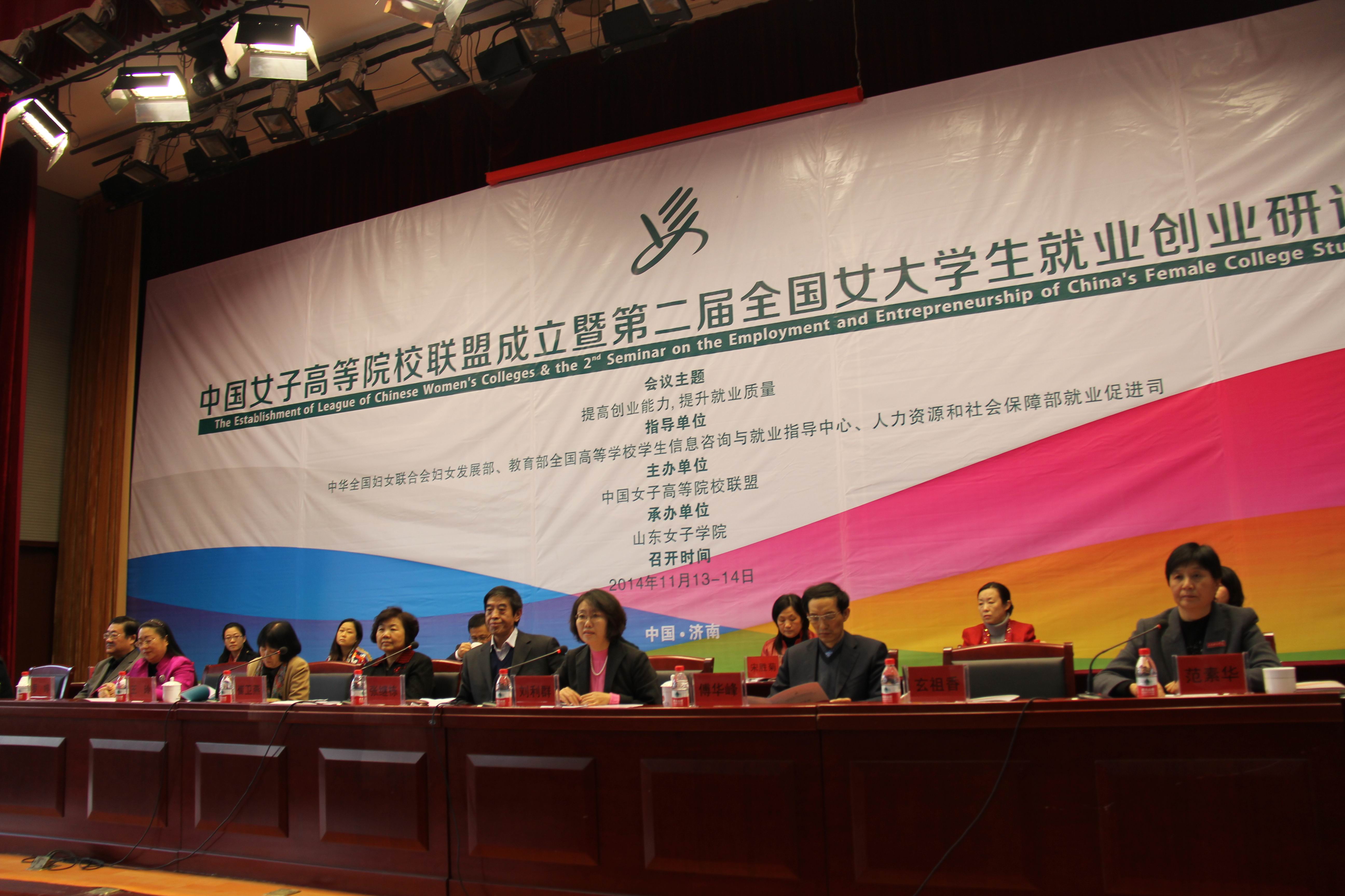 全国妇联妇女发展部部长崔卫燕、教育部全国高等学校学生信息咨询与就业指导中心副主任张继栋出席联盟成立大会并讲话,对联盟成立表示热烈祝贺。崔卫燕在讲话中指出,女子院校既是女性高等教育的探索者、实践者,也是推动妇女事业发展的重要骨干力量。三所女子高等院校顺应教育综合改革的大势,发起成立中国女子高等院校联盟,充分体现了改革的意识、创新的勇气、引领先进性别文化的责任担当,必将加快推进女性人才培养模式的改革,进一步推进女大学生就业创业理论和实践创新,进一步提升女子院校的社会影响力。