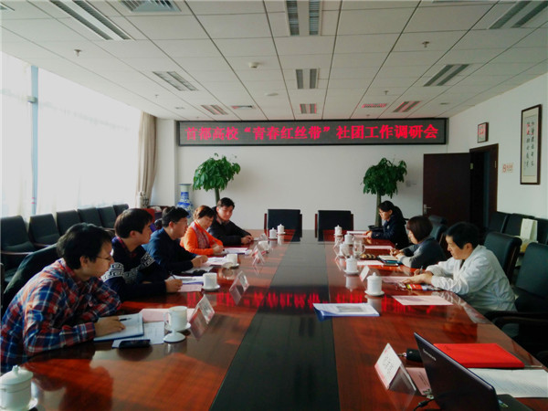 2014年12月18日,首都高校“青春红丝带”社团工作调研会在必赢官网第三会议室举行。首都高校红丝带社团办公室主任许建农、北京市高校卫生研究会秘书长李海红、团市委权益部陈晓东,市教工委徐静波、市疾控中心郝尹虓、校后勤处副处长傅娆、校医疗服务中心易芊、团委社会实践科老师及红十字会社团负责人参加会议,会议由学校办公室主任赵浩主持。