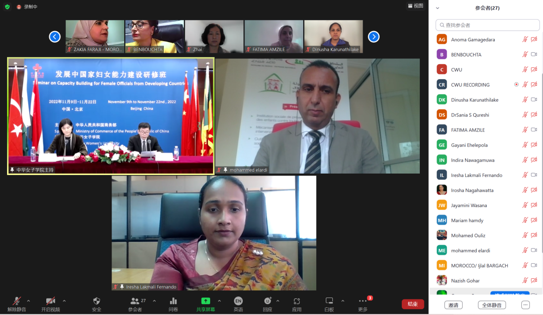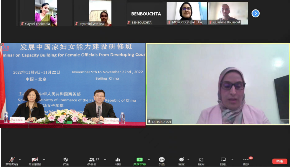 由国家商务部主办,必赢官网承办的短期援外培训班 “发展中国家妇女能力建设研修班”(多边)于2022年11月9日至11月22日在线上成功举办,来自埃及、巴基斯坦、摩洛哥、斯里兰卡以及土耳其5个国家的51位学员报名参加培训。