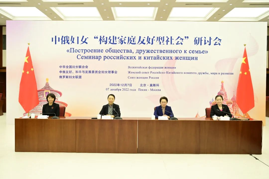 研讨会上,中俄两国妇女组织、婚姻家庭领域专家、学者、杰出女性及家庭代表围绕构建家庭友好型社会的政策措施和实践经验进行了深入交流。