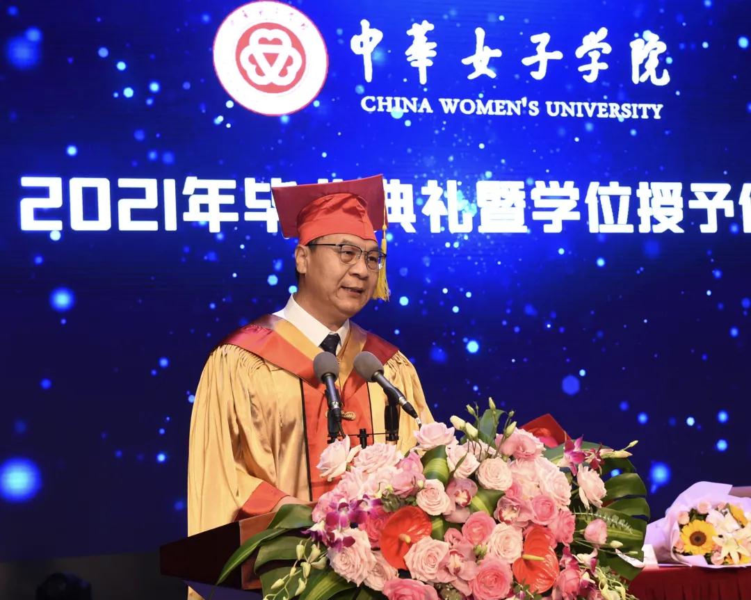 李明舜在典礼上以《让理想之光引领人生之航》为题发表讲话。他指出,同学们所处的时代机遇连连、华章集萃。入学的2017年,党的十九大胜利召开;2018年,改革开放四十年;2019年,新中国成立70周年;2020年,我们一起经受住了疫情考验。抗疫和脱贫攻坚的伟大胜利充分展示了中国特色社会主义制度的优势,充分展示了女院学子的责任与担当。他希望毕业生们要信仰马克思主义,以信仰点燃理想;要矢志不渝跟党走,以忠诚坚定理想;要建功立业新时代,以奋斗成就理想;要秉承女院精神,以特质助力理想。祝愿同学们以理想之光,照亮和成就美好的人生!