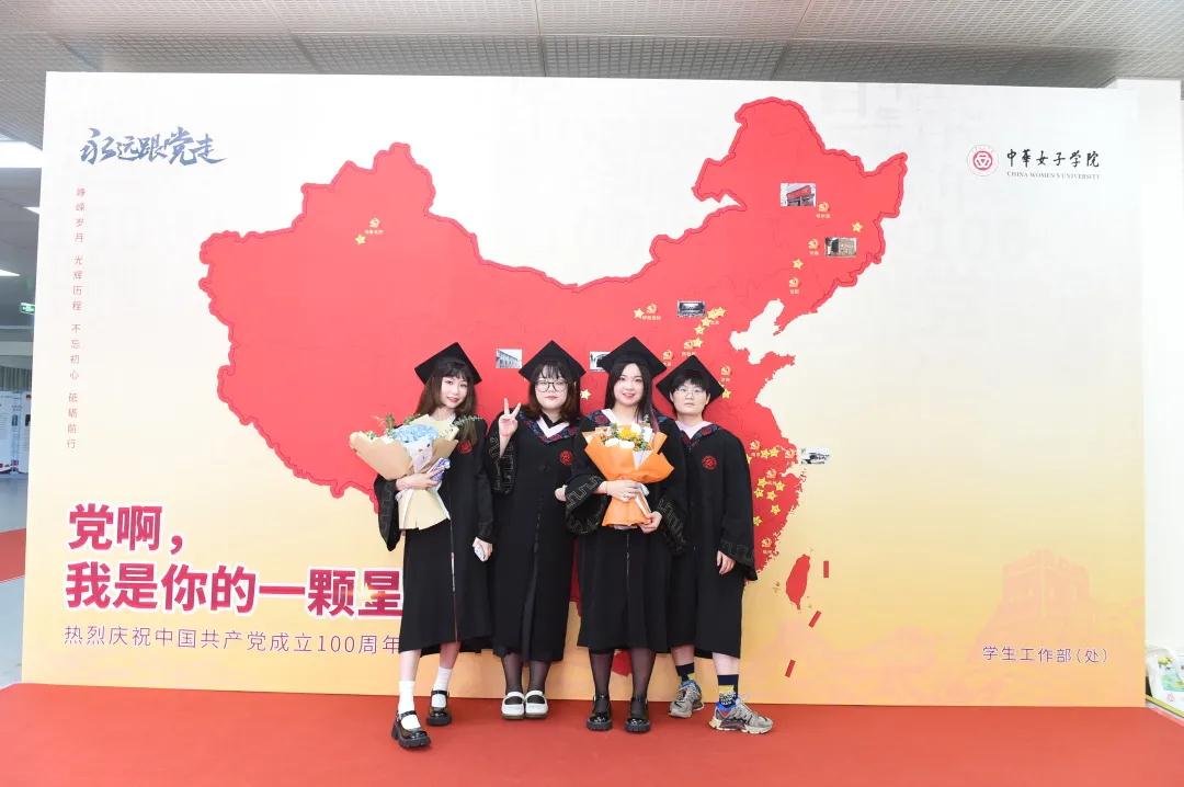 毕业生们身穿学位服在女院的四季轮回中走过,秋收、冬藏、春生、夏长,每一处光景都是难忘的记忆;带着对未来的美好期待,同学们在“党啊,我的你的一颗星”主题展示板上将自己的就业和求学去向印刻在了我们党百年征程的历史定位中;“立大志、明大德、成大才、担大任”、“我们毕业啦”、“前途似海来日方长”等毕业留念板前毕业生们留存美丽的身影;今年学校为毕业生定制了毕业文化衫、“I爱CWU”毕业生专属口罩,“我爱女院”的造型成为了同学们喜爱的拍照打卡地。在“小额捐赠献爱母校”展板前,同学们自发进行捐赠,作为校友基金,支持母校发展。