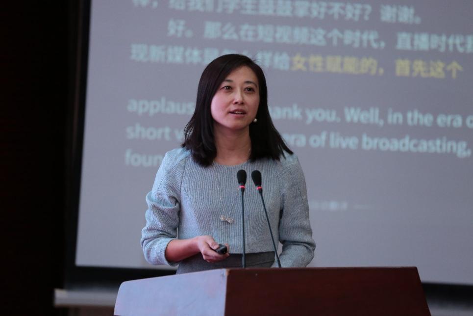 中央广播电视总台新闻新媒体中心,央视新闻微信制片人马文佳女士作为业界专家,分享的题目是《在奔跑中调整呼吸》。她从耐力、策划力和发散力三方面分享了作为新媒体平台的女性媒体人日常工作的情况,展现了女性媒体人拥有的力量。