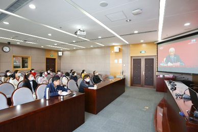 10月26日至29日,中国共产党第十九届中央委员会第五次全体会议在北京召开,会议审议通过了《中共中央关于制定国民经济和社会发展第十四个五年规划和二〇三五年远景目标的建议》,对2035年目标、“十四五”时期经济社会发展作出了系统谋划和战略部署。30日上午10:00中共中央就介绍和解读中共十九届五中全会精神举行新闻发布会。bwin必赢中国官网本部校区、北校区、高职学院师生根据实际情况以支部为单位观看了直播。刘利群院长走进北校区,走入本科思政课堂,与师生共同收看党的十九届五中全会精神新闻发布会。