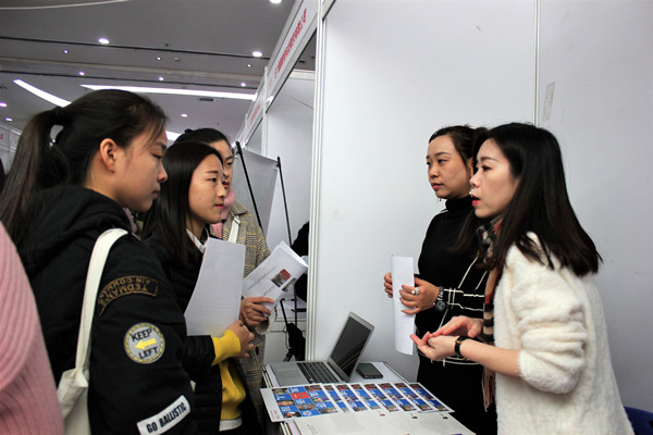 招聘会上,全校学前教育专业的同学们积极参与,她们求职热情高涨,带着自己精心制作的简历与用人单位积极互动,赢得了用人单位的高度肯定。