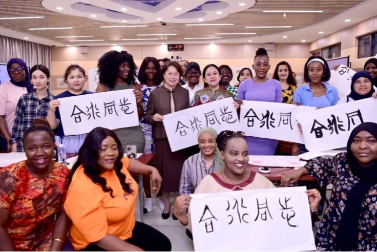 黄晓薇陪同布安参观了学院校史馆,观摩国际留学生课堂,共同写下“志同道合”,寄语中印尼妇女友好合作。