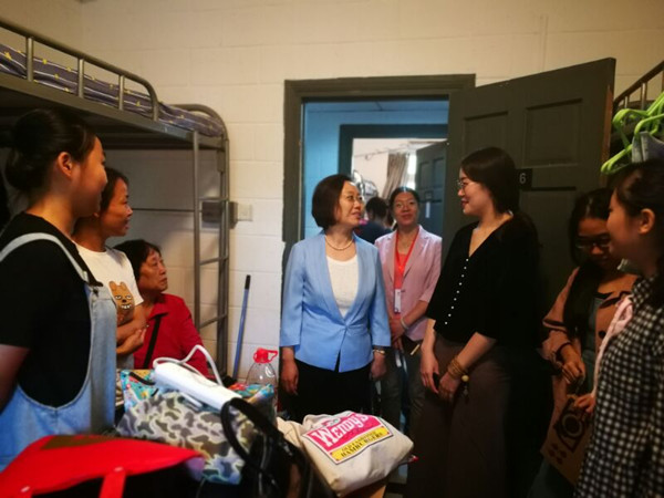 商校校区是女子学院合作了十多年的校区,汇佳校区是女子学院今年新开辟的校区,不管是老校区还是新校区的迎新工作,都得到了学校党委和校领导的高度重视。9月11日报到当天,学校党委书记李明舜和院长刘利群分别亲临商校校区和汇佳校区视察迎新工作。在商校校区负责人郭春鸿的陪同下,李明舜深入迎新工作现场,逐一视察新生报到处、卧具售卖区和学生宿舍,和学生、家长亲切交流,慰问迎新工作人员。李明舜对新生的到来表示热烈欢迎,亲自了解同学们的需求,并勉励同学们尽快融入女院这个大集体,努力学习,成长为女院优秀学子。在汇佳校区的迎新现场,刘利群在汇佳校区负责人丁新娅的陪同下,走进宿舍、食堂等生活区并对安全问题提出了各项建议,走近学生家长并与他们亲切交流,走尽迎新各工作点并亲切慰问工作人员。刘利群希望同学们尽快适应大学生活,践行女院精神,不负青春韶华。她对汇佳校区教职工的辛苦付出表示感谢,希望他们在今后的工作中充分发挥分校区的服务协调基础功能,确保分校区安全、高效、规范、有序运行。
