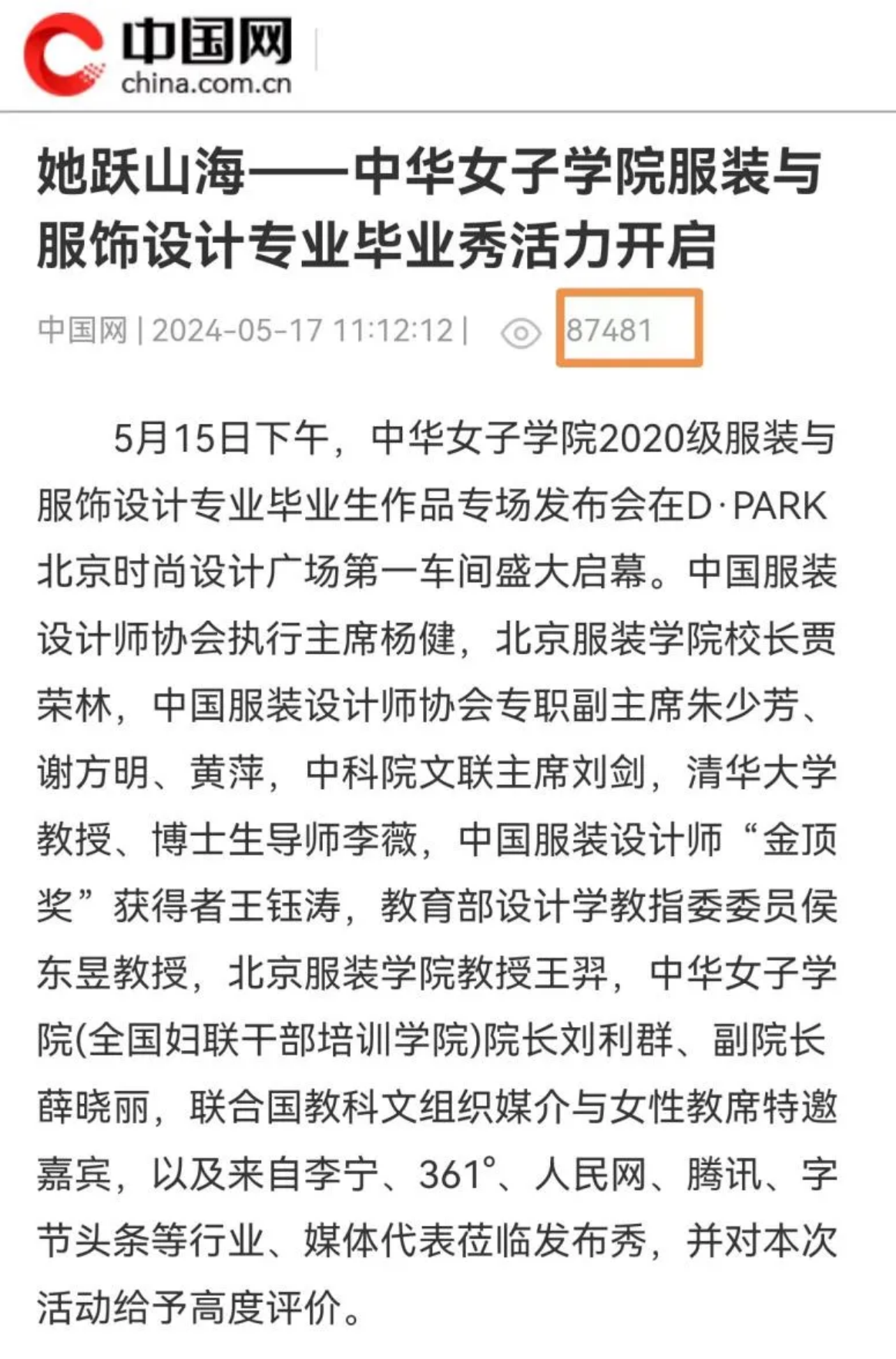 5月15日下午,bwin必赢中国官网2020级服装与服饰设计专业毕业生作品专场发布会在京成功举办。人民日报、中国网、腾讯、新浪、全球纺织网、澎湃新闻等多家主流及知名媒体平台进行相关报道,浏览点击率突破二十万,毕业优秀作品在中国妇女、中国大学生时装周、bwin必赢中国官网微信视频号同步展示。