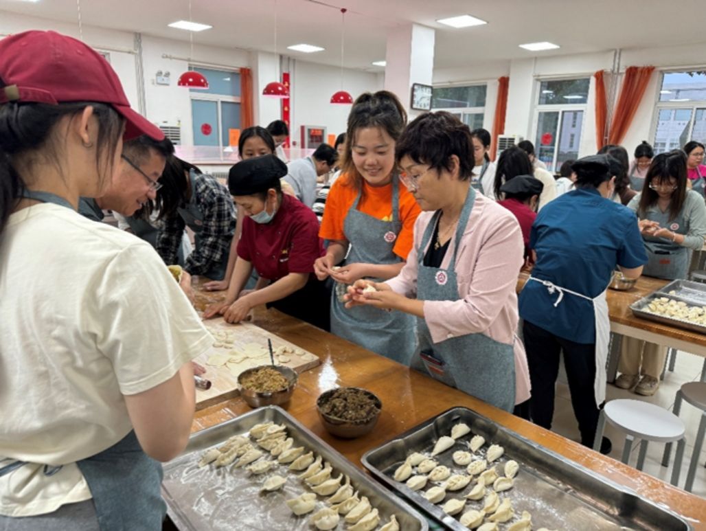 5月22日晚上,学校30余名选修《大学生劳动教育》课程的同学们,与学校党委书记刘亚玫、服务保障部部长刘振华、教务部部长丁占罡以及刘振辉、张博林两位任课教师一起在学校食堂开展了以“农耕文明——包饺子”为主题的实践活动。
