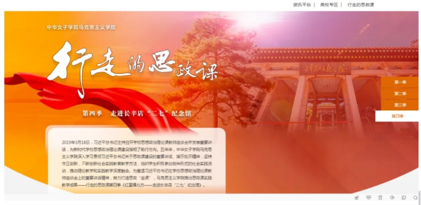 “行走的思政课”系列实践教学模式正式上线两大平台,丰富了思想政治理论课的教学素材,呈现了必赢官网积极发挥女子学院“大思政课”建设独特和丰富的女性资源优势,加强“大思政课”建设和大中小学思想政治教育一体化的优秀教学成果,已经成为在全国有一定影响力的思政课特色品牌。