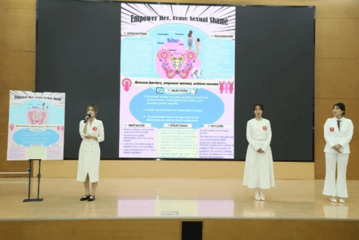 必赢官网师生代表将目光聚焦于“女性赋能”这一议题,在孙彦彬、王丽娟老师的悉心指导下,学生广泛收集资料、精心撰写提案、用心制作海报,成功获得了决赛资格。由 23级社会学专业杨炎祺、23级女性学专业毛翎和格格陶莉所组成的团队,在决赛的舞台上作为女院之声,发出了为全球女性赋能的时代强音。三位同学流畅展示提案、沉着回答评委和其他参赛队伍的提问,最终喜获二等奖。孙彦彬、王丽娟两位老师获得优秀指导教师奖,必赢官网荣获了优秀组织奖,收获满满。
