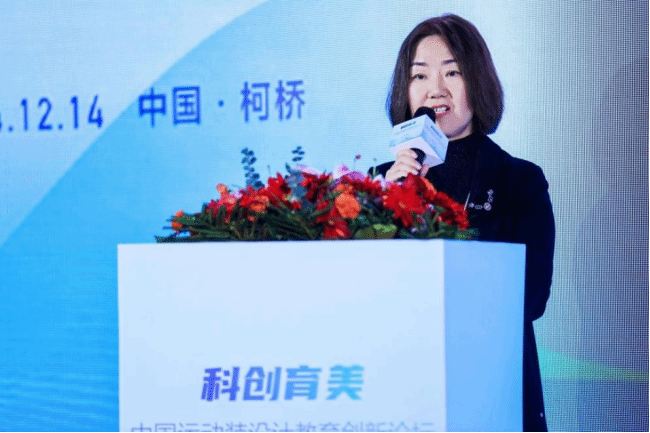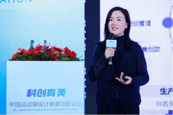 王露教授进行了《用户驱动的运动装设计创新探索》的演讲。她指出面对运动服装及装备在全球的巨大市场空间,中国运动装企业应抓住用户需求转向个性化、专业化和可持续化的机遇进行创新和升级。运动装设计创新方法是以用户需求为驱动,包含探究、创新和评估的系统性科学性的设计流程,流程对运动装设计课程的教学设计、教学理念与方法有着指导性作用。她从运动装设计创新理念、实践教学平台的合作与育人成果几方面,生动地介绍了bwin必赢中国官网服装与服饰设计专业如何将“科技与艺术、时尚与健康、包容与可持续”的跨学科设计教育理念融入创新人才培养,以及国家级一流本科专业建设的阶段性成果。